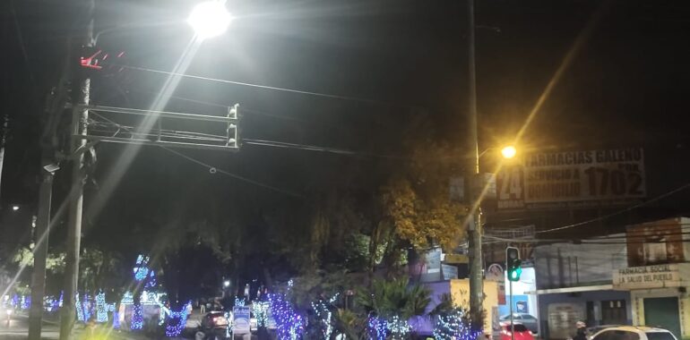 Las brigadas de trabajo recorren diariamente las calles para realizar mantenimiento preventivo, atender reportes ciudadanos y extender la cobertura luminosa a nuevas áreas. Su labor permite que los vecinos disfruten de una ciudad iluminada, segura y lista para celebrar.
