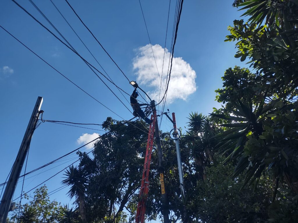 Incluso en áreas de difícil acceso, los técnicos se movilizan con escaleras en mano para cumplir con su misión. La renovación de todo el alumbrado inició en mayo de 2024, y concluyó a inicios de 2025 cambiando todo el panorama del municipio. Ahora las luminarias ofrecen mayor durabilidad, menor consumo energético y mejor visibilidad para peatones y conductores.